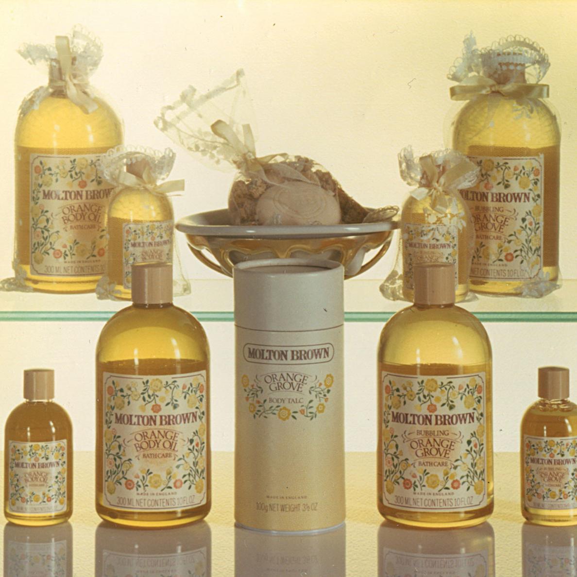 Το 1984, λανσάραμε το πρώτο μας signature άρωμα – τη συλλογή Orange Grove Bath & Body, η οποία σήμερα είναι γνωστή ως Orange & Bergamot. Εκτός από το ότι περιλαμβάνει ένα από τα πρώτα πολυτελή σαπούνια χεριών της Αγγλίας, η συλλογή διατίθεται σε ένα ξενοδοχείο πέντε αστέρων του Λονδίνου, καθιστώντας μας ένα από τα πρώτα βρετανικά πολυτελή εμπορικά σήματα που προμηθεύουν ξενοδοχεία.